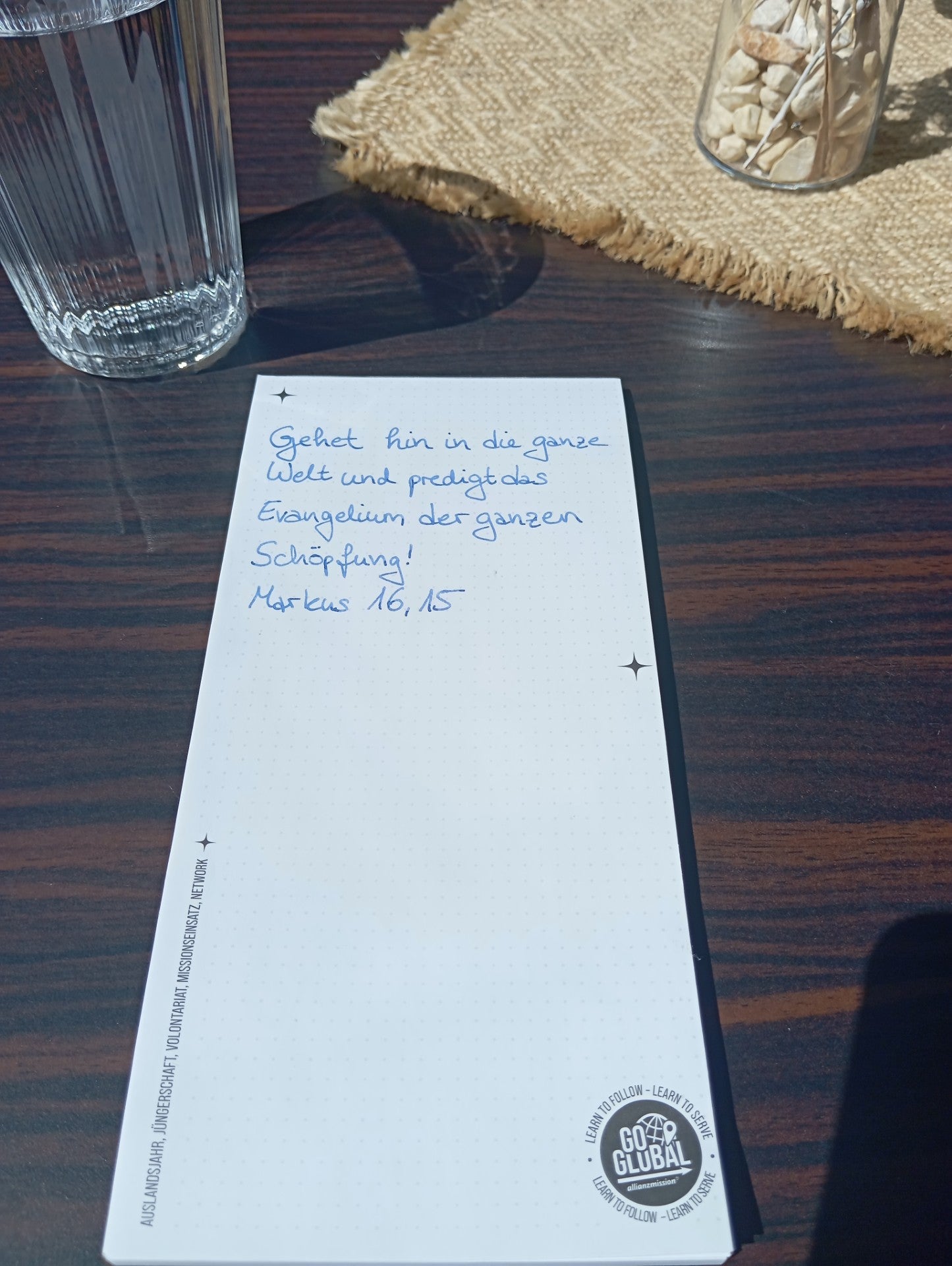 Dieses kompakte A5-Notizbuch verbindet klares Design mit einer starken Botschaft: Der Einband zeigt das GoGlobal-Logo und den Slogan „Learn to Follow. Learn to Serve.“, der dich täglich daran erinnert, Jesu Ruf zu folgen und im Dienst für andere zu leben. Innen findest du hochwertiges, liniertes Naturpapier – bestens geeignet für deine Gedanken, Gebete und kreativen Pläne. Ob im Jugendkreis, auf Missionseinsatz oder im Alltag: Dieses Notizbuch ist dein treuer Begleiter.